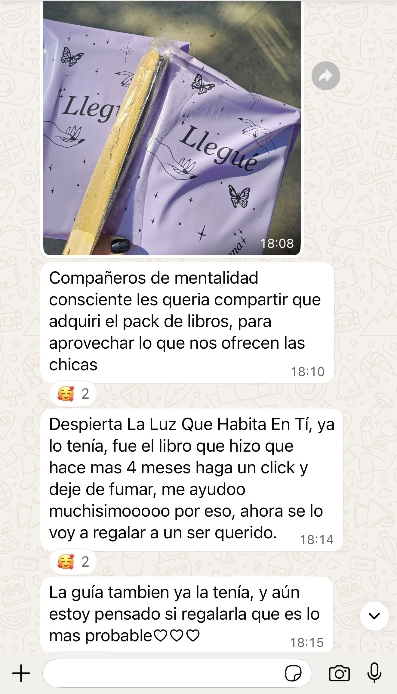 Después de haber leído más de 200 libros, después de atrevsar muchas experiencias, como la tristeza, carencia, inseguridades, malas relaciones. Tras trabajar con más de 150 clientes de manera presencial y ver los resultados positivos en sus vidas, nació este empresa, para ayudarte a lograr el bienestar en todas las áreas de tu vida.
